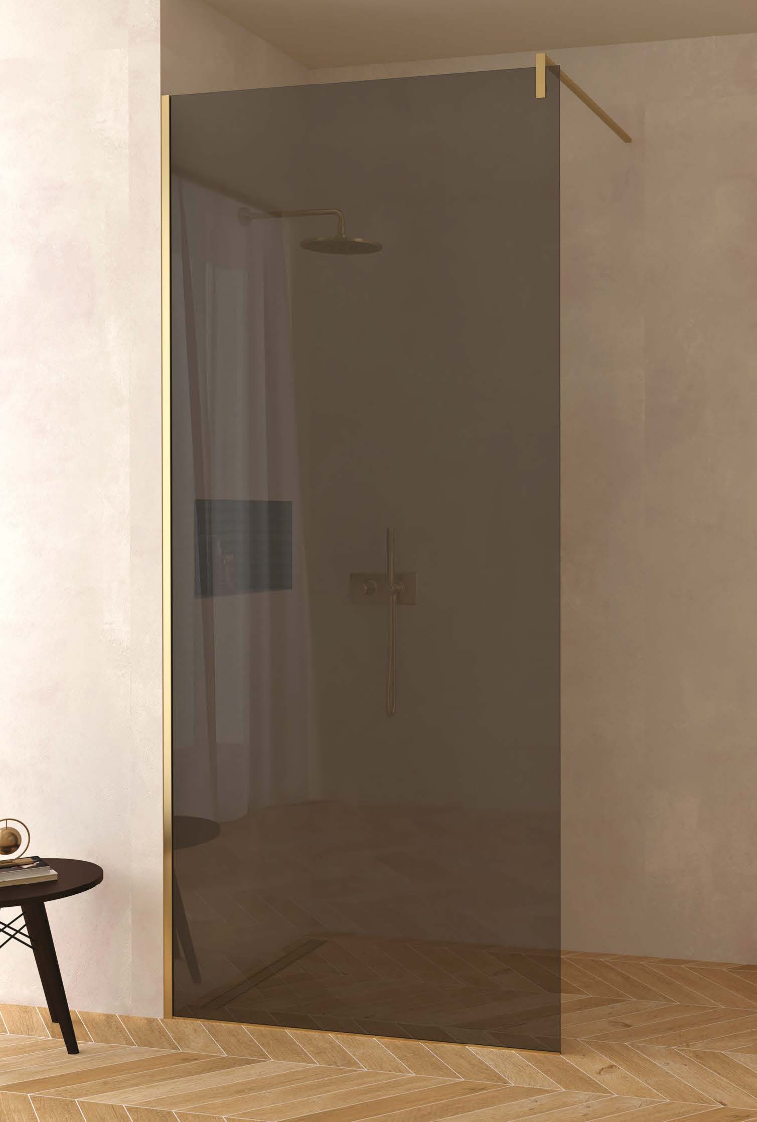 Pannello WALK-IN, altezza 240 cm, cristallo 8 mm, con barra fissa perpendicolare.