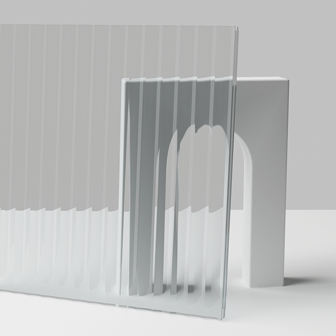 Porta a battente centrale con 2 fissi in linea, apertura esterna, chiusura magnetica, cristallo temperato da 8mm.