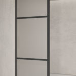 Pannello modello Z, reversibile, con profili di fissaggio a terra/soffitto e profilo a muro. Comprende profilo di unione ad H per composizioni IN LINEA con altro pannello. 3 cristalli temprati 6mm H. 220 – 240 cm.